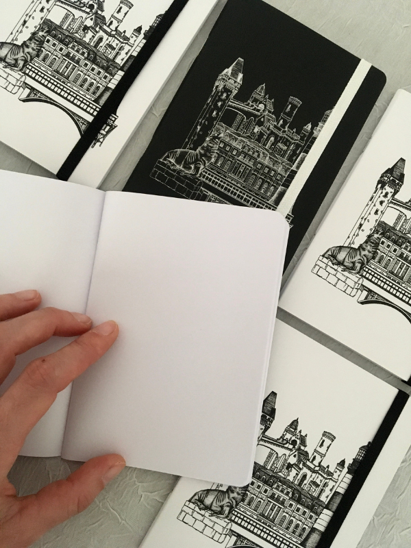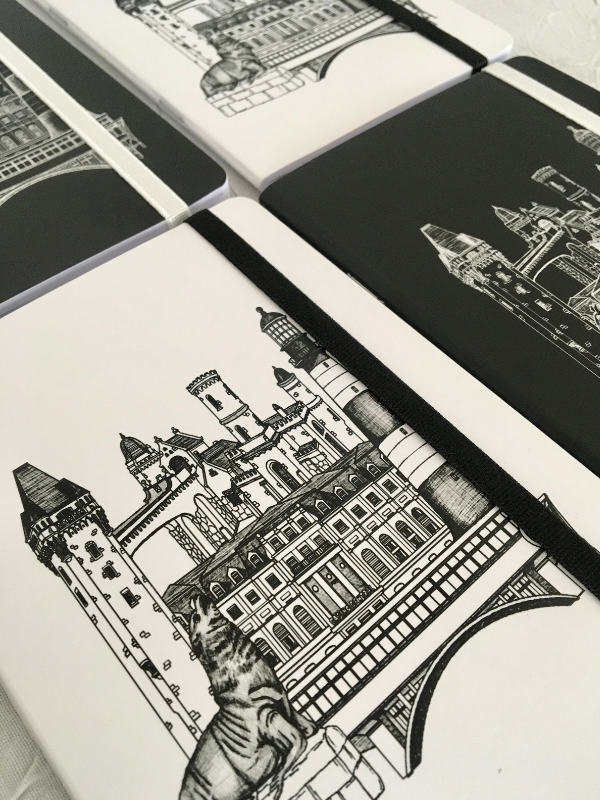 Libreta tamaño A6 (10×14 cm aprox) con dibujo de Mar del Plata.